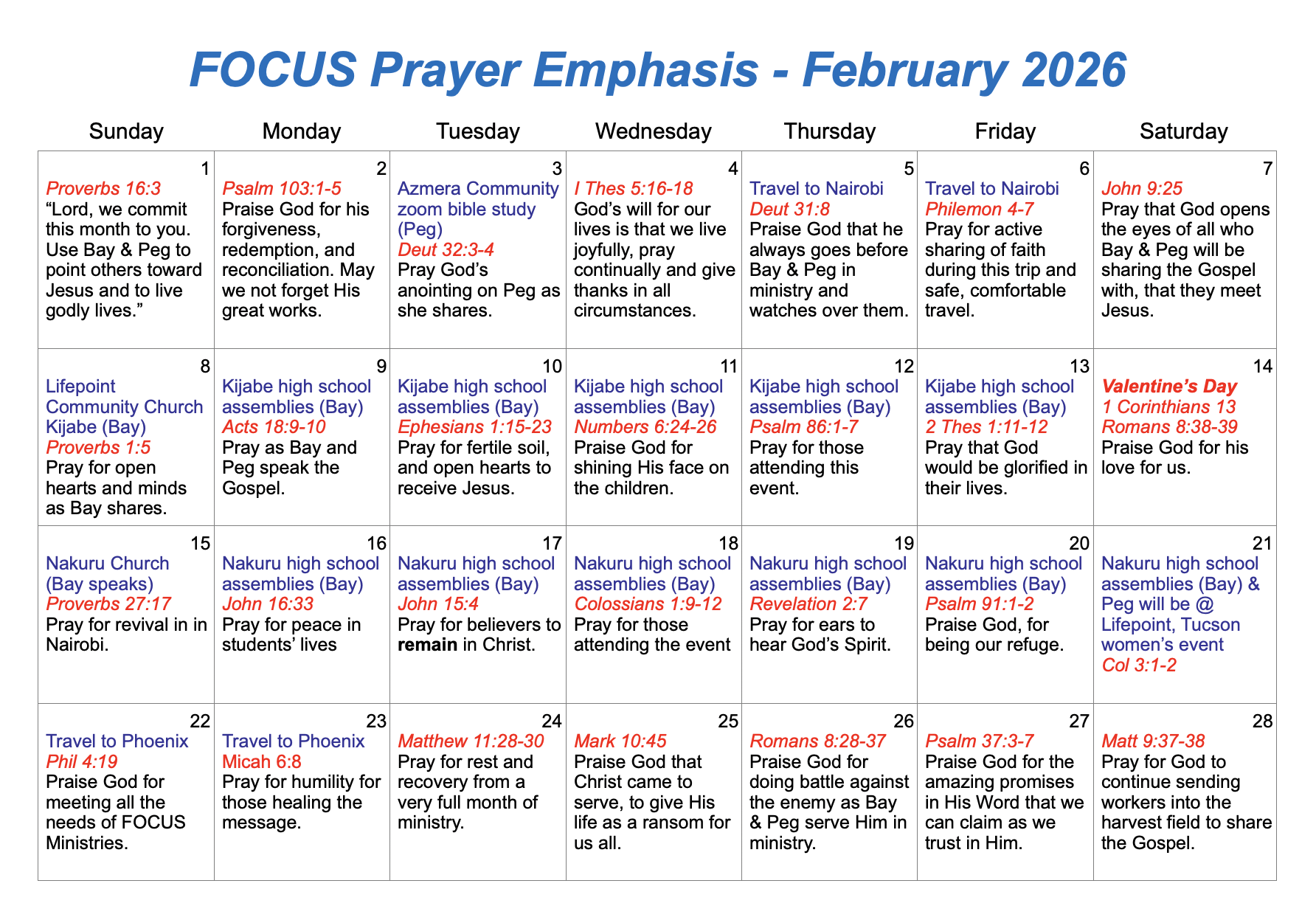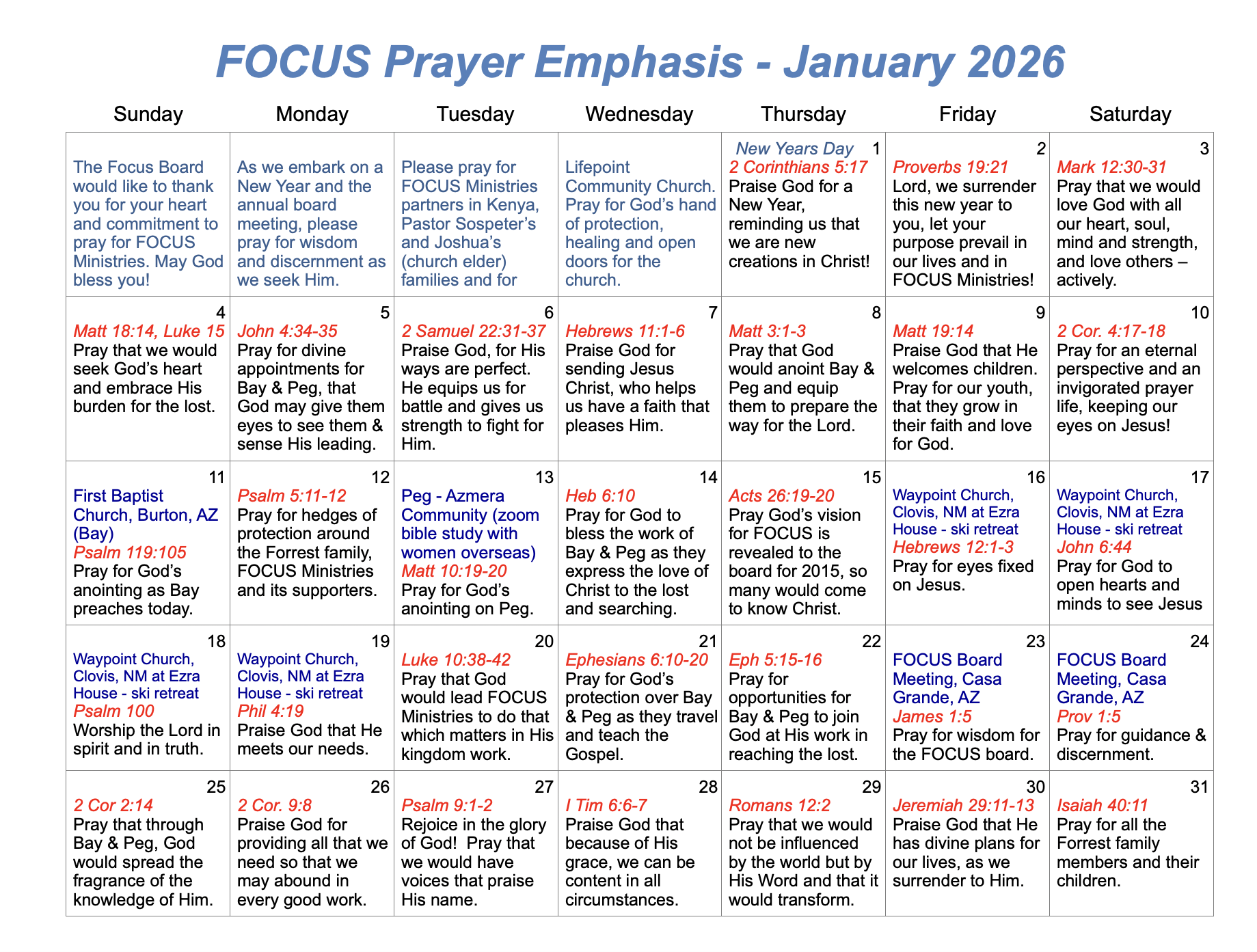 Prayer Calendar